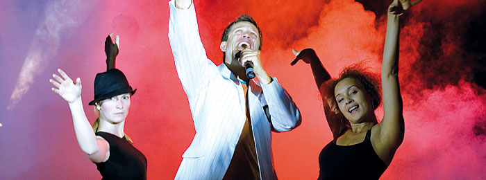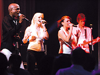 SONIC BANG! bietet ein außer-gewöhnlich vielseitiges Repertoire. Natürlich auch Dinnermusik – und zwar als eigenes „Unplugged-Konzert“ mitten im Publikum – einfach nur genießen … und dann macht es „BANG!“ und die Party geht los … thematische Schwerpunkte wie z.B. „Abba“ mit allen Hits in einem 15-Minuten-Special, die „80s“ von „Tainted love“ bis „Don´t leave me this way“, die „90s“ von „Sing Hallelujah“ bis „Rhythm is a dancer“ oder "Latin" von "Let´s get loud" bis "Samba di Janeiro" sind perfekt inszeniert mit unserer 4-köpfigen Dancecrew (optional) in abgefahrenen Outfits. Synchron dazu laufen (optional) beeindruckende Videosequenzen als riesiger animierter Bühnenhintergrund.